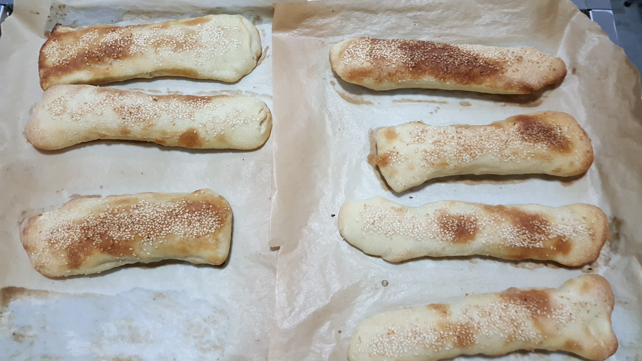 This sesame flat bread (芝麻烧饼) is leavened using sourdough and laminated then shaped into long rectangular shape. It is topped with sesame seed…