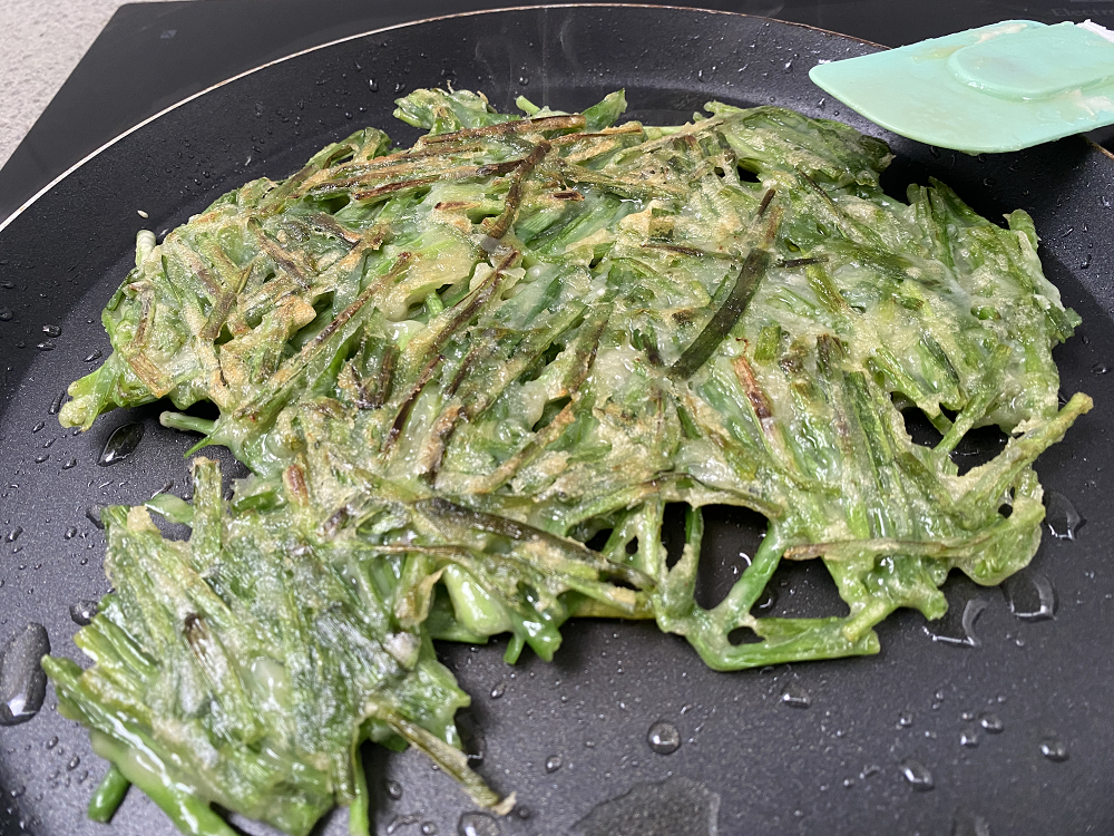 I bought Chinese chives over the weekend and decided to make a savoury pancake today. I usually stir fry it with egg and eat it as a side dish with rice.