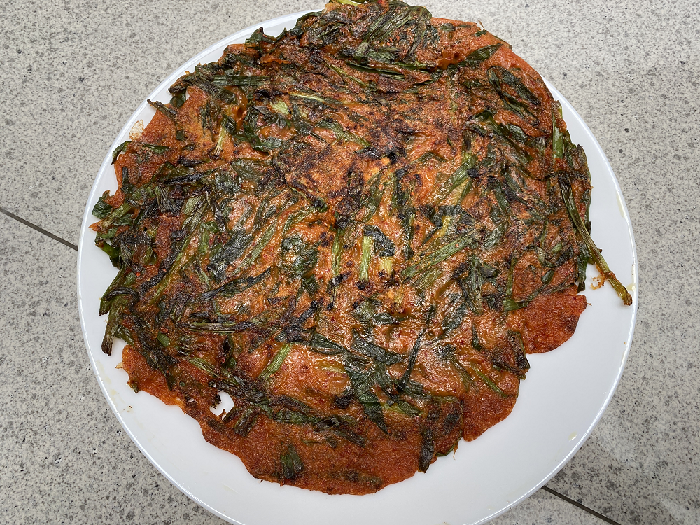 Ingredients: Oil, Flour, Salt, Small Kimchi Pieces