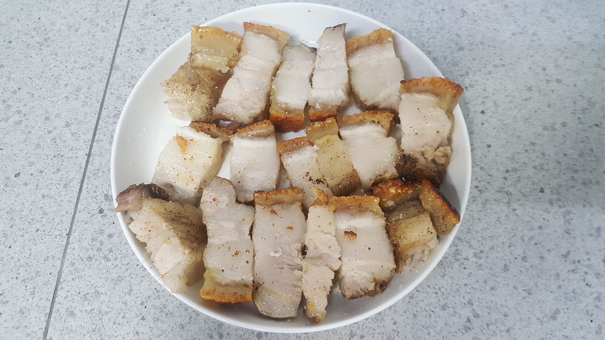 I have made 2 rounds of pork belly: 1 fatty one and 1 lean one. Piglet likes the crunchy skin and it does not have a strong gamey flavour.
